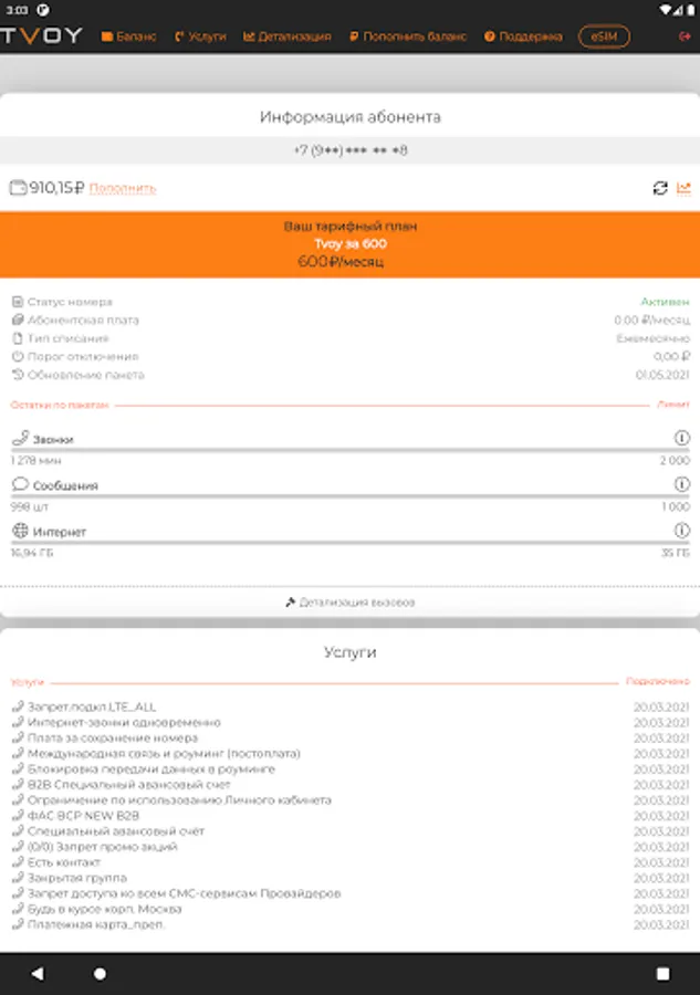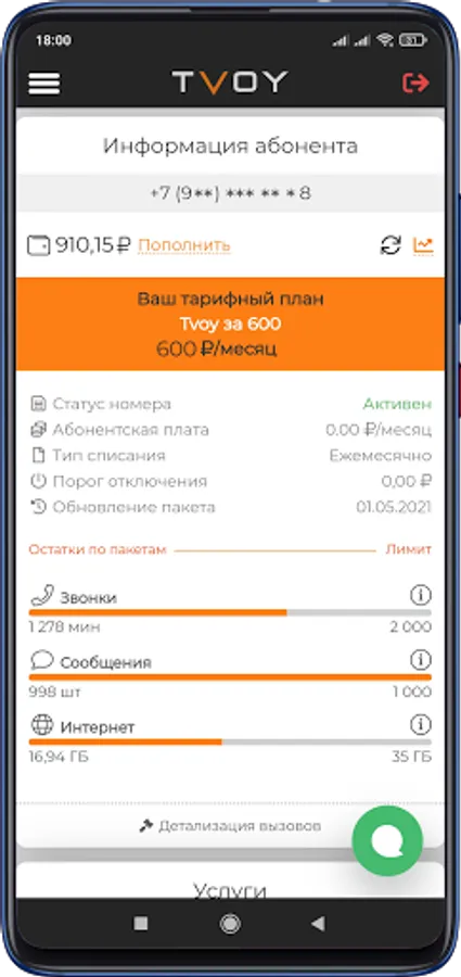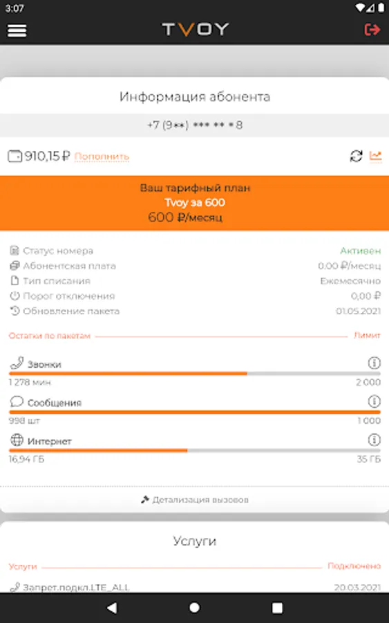 TVOY Personal Account is a simple and convenient application for TVOY telecom subscribers.