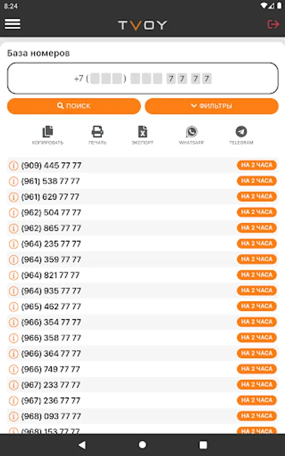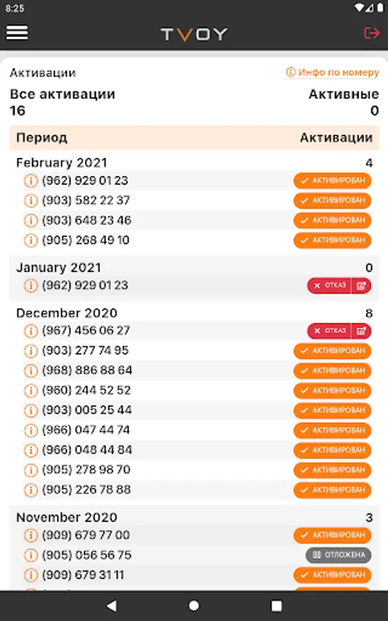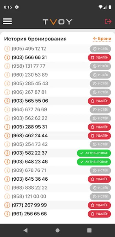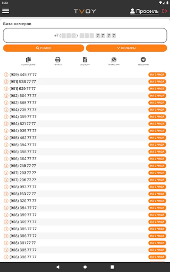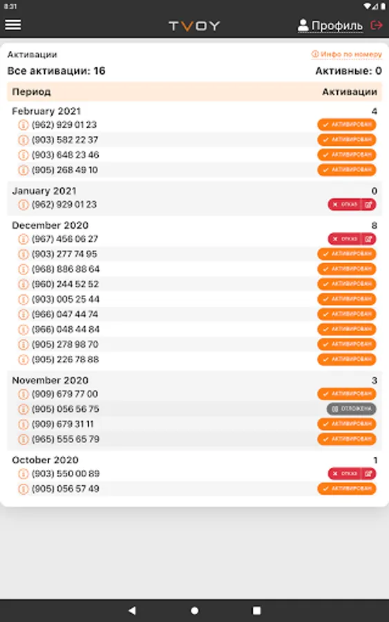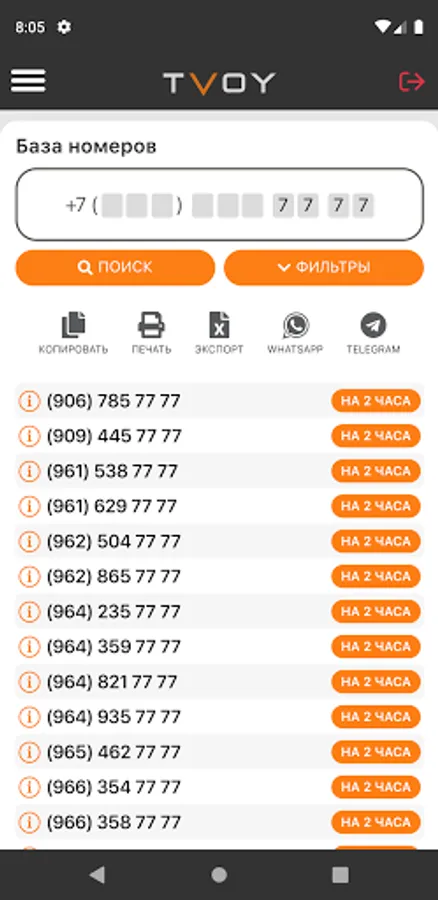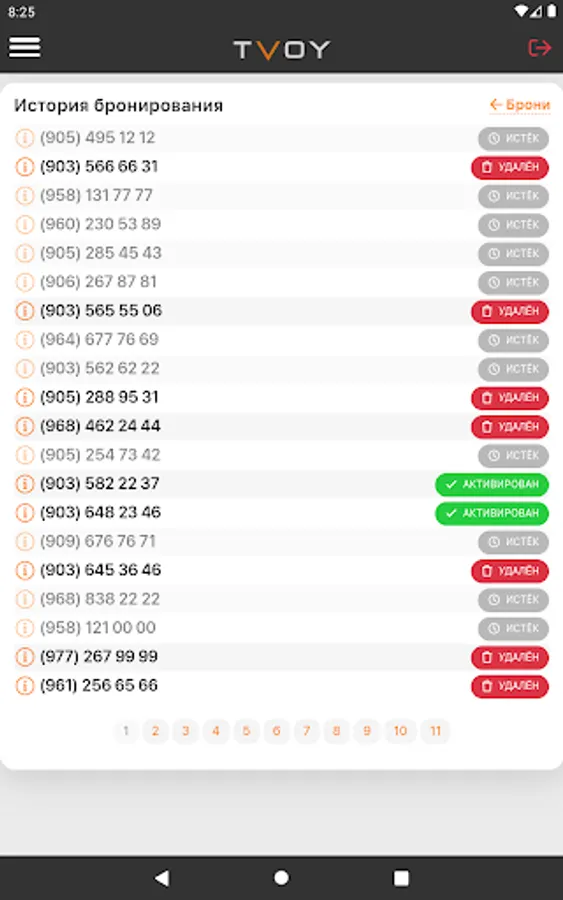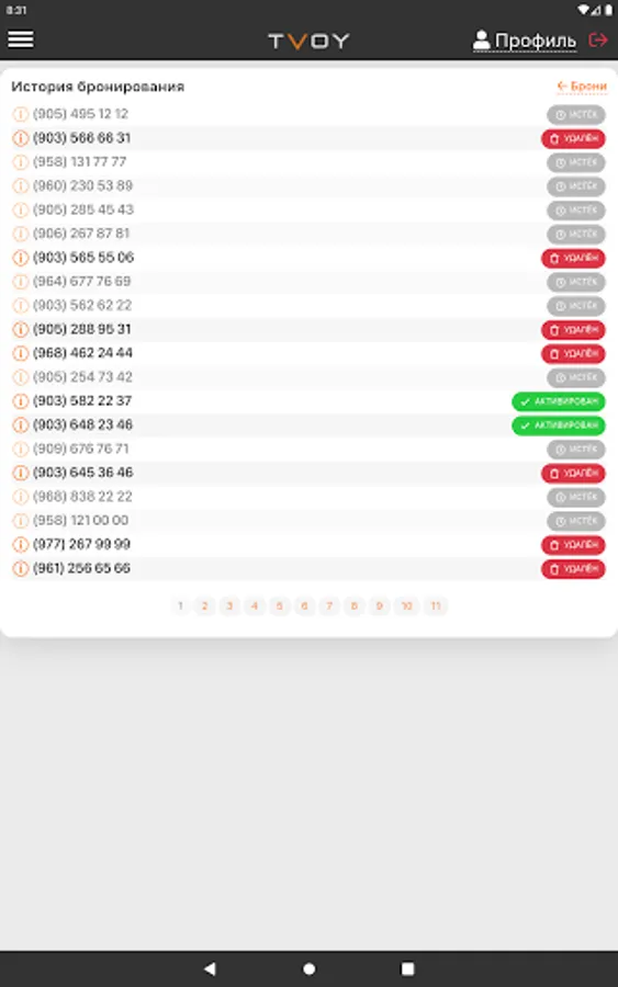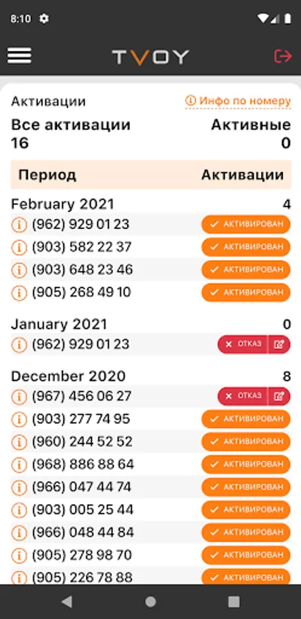 Dealer's office is a simple and convenient mobile application, with the help of which TVOY customers can find a "nice" mobile number in our database of numbers, select a tariff plan and connect to a mobile operator.