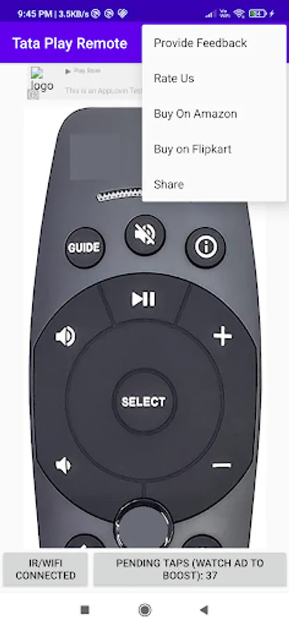 Infrared and Wifi based remote for Tata Play/ Tata Sky Settop box DTH. This should work across all Tata Sky/Sky+ dth boxes.