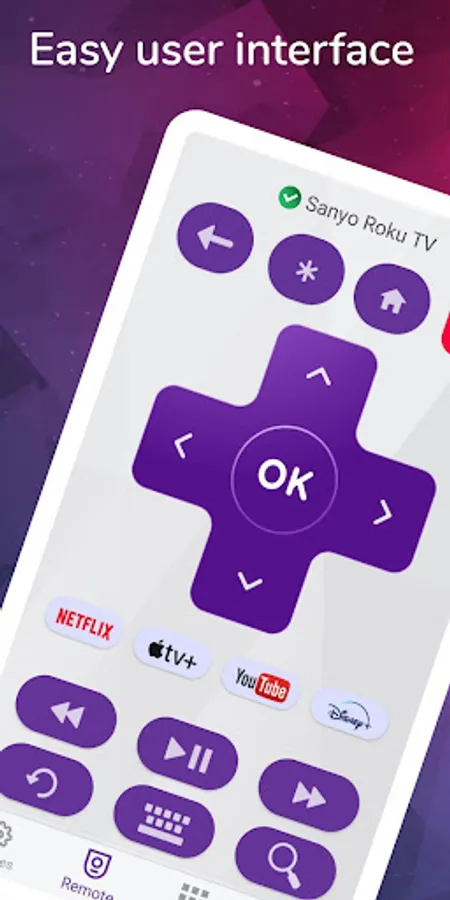 The app is highly recommended when your normal sanyo smart tv remote has been broken or has run out of batteries, and you want to use the phone as a sanyo roku remote replacement. You only have to follow the instructions and select the model of your TV from the list.
