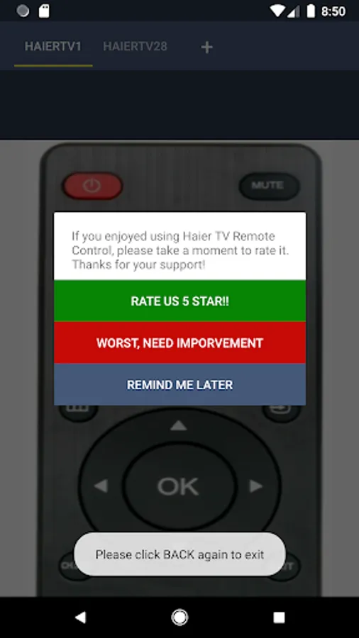 Email us at justremotecontrolinc@gmail.com, good reviews motivate developers and improves Apps.