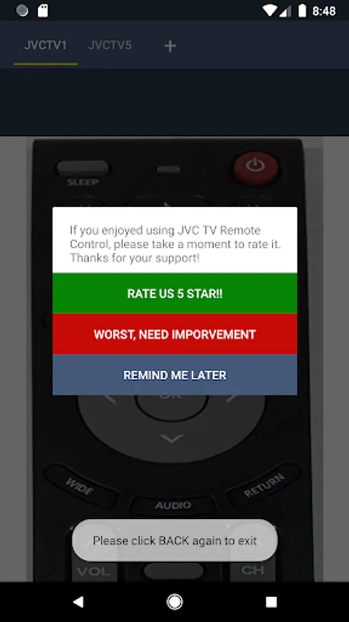 Email us at justremotecontrolinc@gmail.com, good reviews motivate developers and improves Apps.