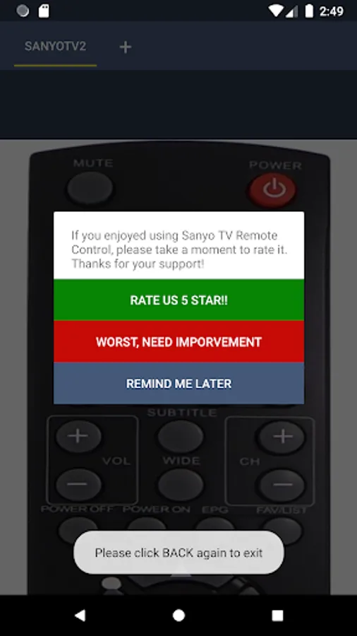 Email us at justremotecontrolinc@gmail.com, good reviews motivate developers and improves Apps.
