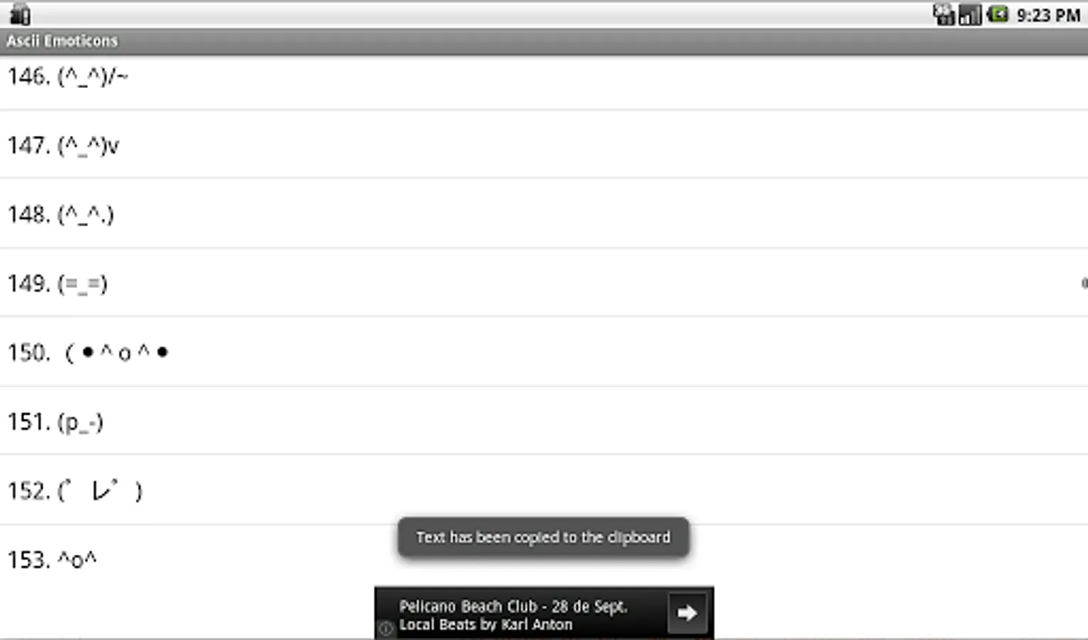 Browse the emoticons, select the one you want to use and automatically will be copied to your clipboard. Paste it where you want.