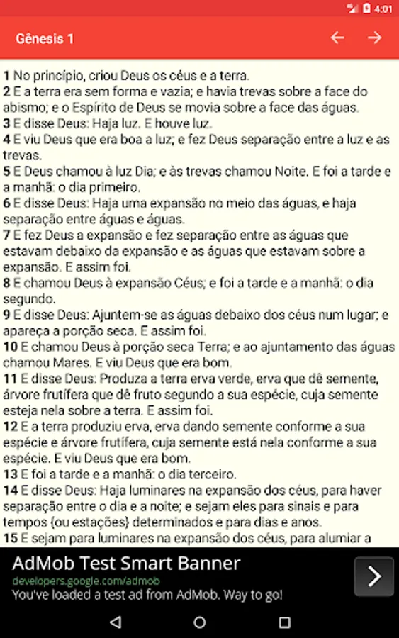 Audio Bible in Portuguese has been integrated into our app, so when you want to listen to the audio, just press the "play" icon in the top right corner when reading a chapter.