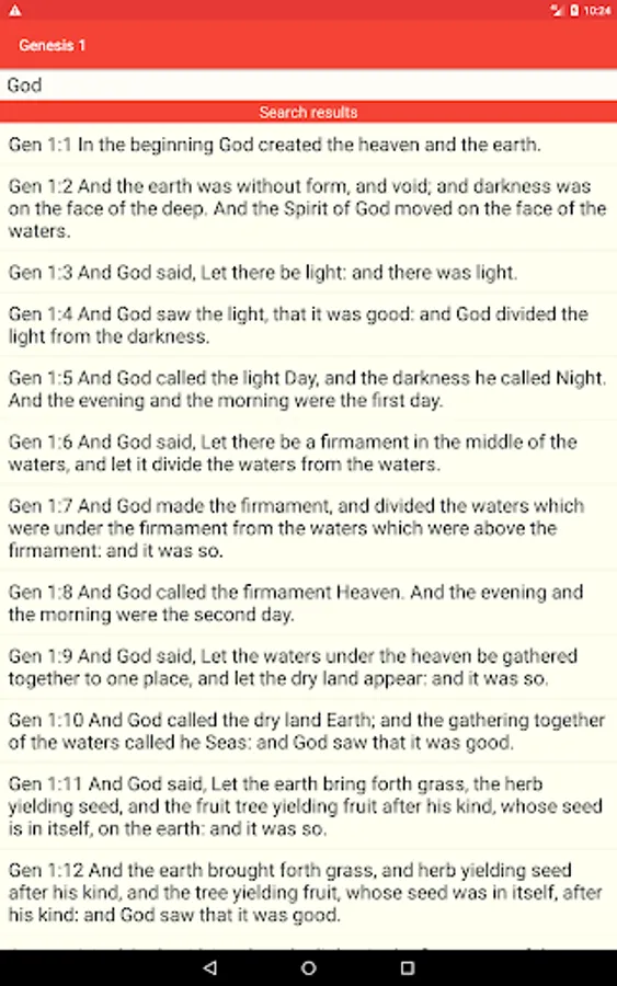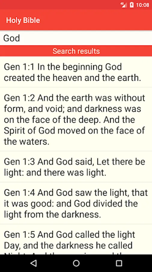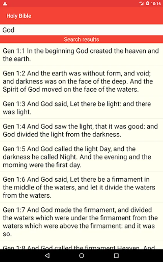 If you don’t remember where is located certain biblical verse in the Holy Bible, you could use the search feature of this app. And, as it searches in the local database that comes preinstalled with the app, you don’t need internet connection to use this feature.