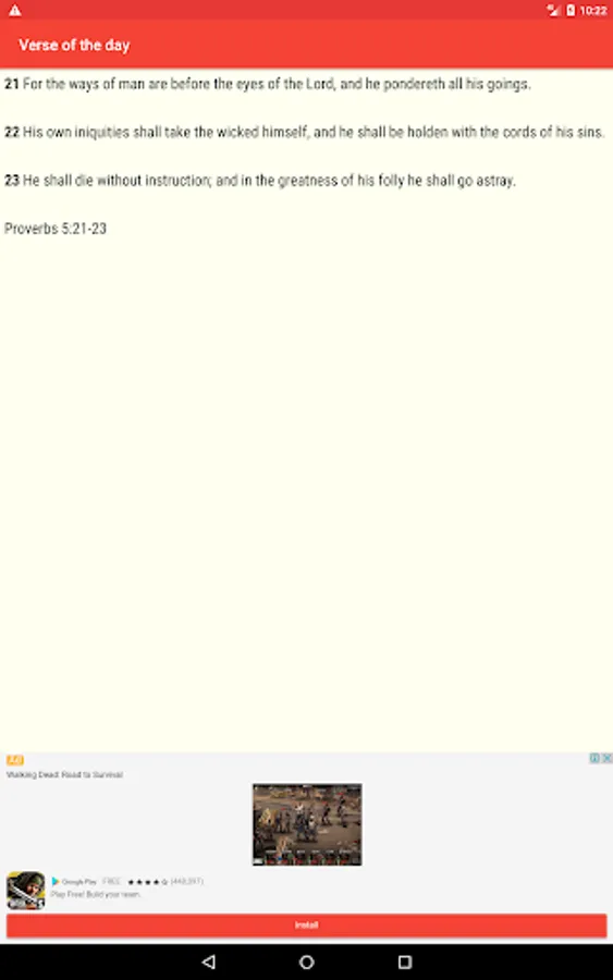 Receive a blessing versicle everyday. A Daily Bible Verse is delivered everyday in our section Daily verse. If you have the notifications enabled for this app, you will receive daily in your a new word of God directly to your mobile device through the notification center and the app itself. Reading daily kjv bible verses never was so exciting!