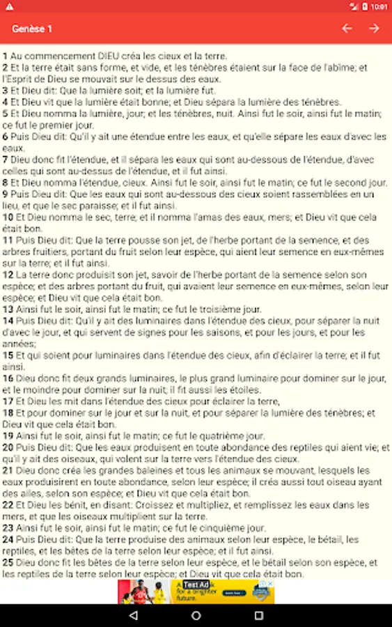 (Bible in French with voice synthesis audio function. Louis Segond version 1910).