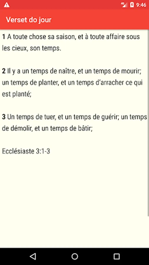 - Quick Access: You can quickly access any book, chapter or verse with just a few taps.