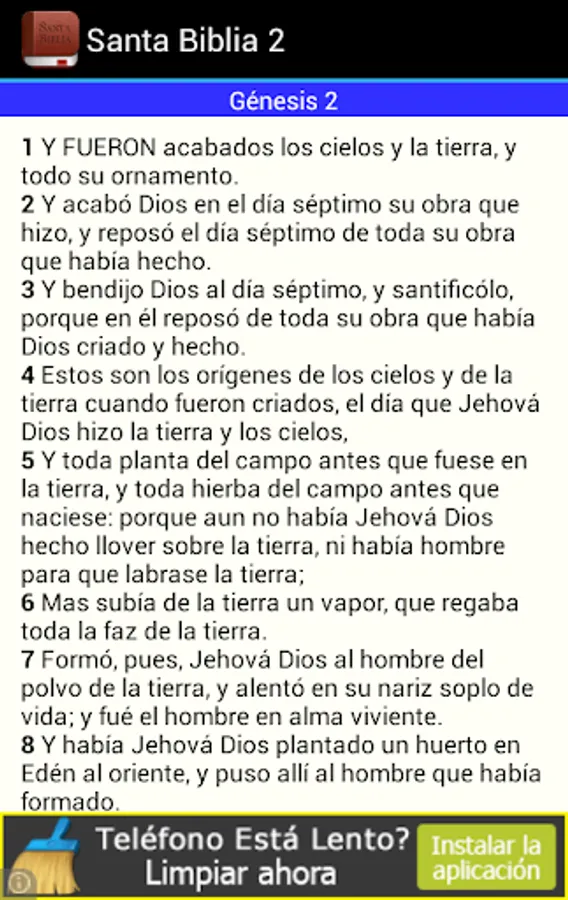 Carry on your Android Holy Bible Reina Valera 1909, the Old and New Testament in Spanish. No need internet connection, once installed, you can use it regardless of whether or not you connection.