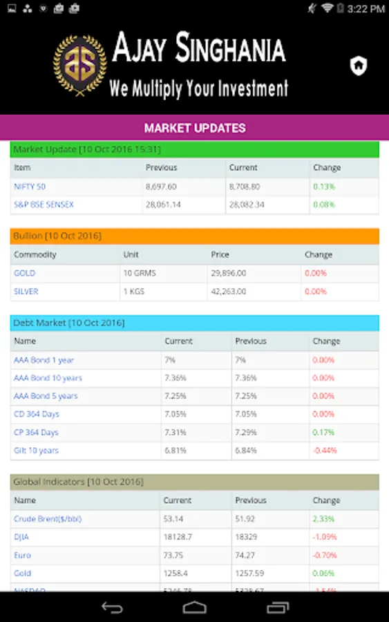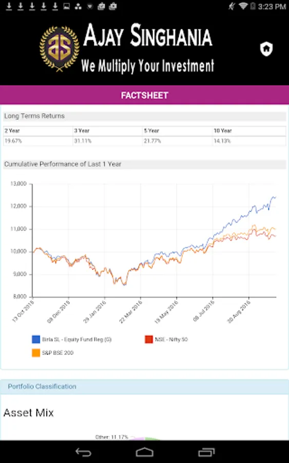 Ajay Singhania is a app brought to you by Mr. Ajay Singhania. This App is for Investors to track their Investment Portfolio and know about Mr. Ajay Singhania. Products covered include Mutual Funds & Equity Shares.