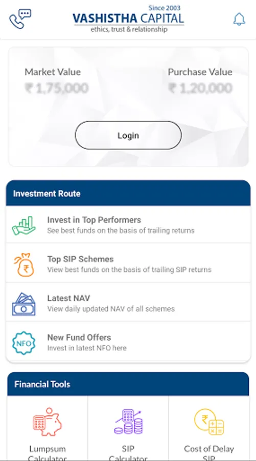 Vashistha Capital is one-stop shopping for all your Wealth Management needs. You can use this state of the art app to stay on top of your Complete Financial Portfolio with all assets: