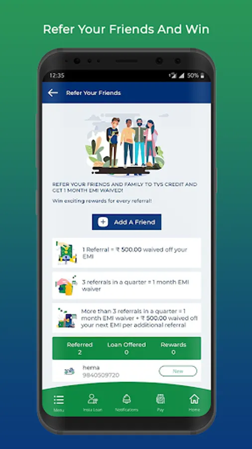 • Refer your friend for any of our loans and help them buy their car, bike, smartphone, air conditioner of their choice through the TVS Credit Saathi app, and stand a chance to have your EMI waived off*