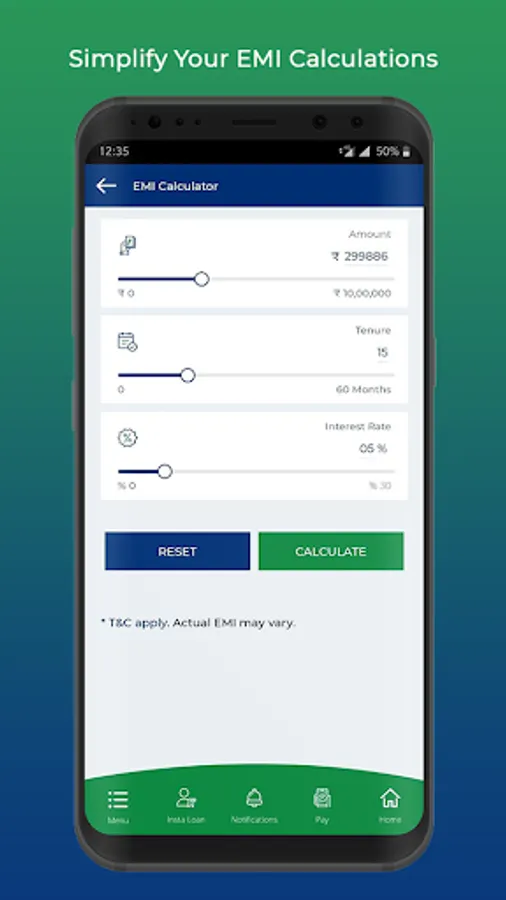 • Calculate the EMI for your loans through a simple, easy-to-use interface