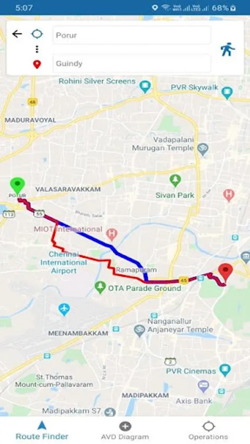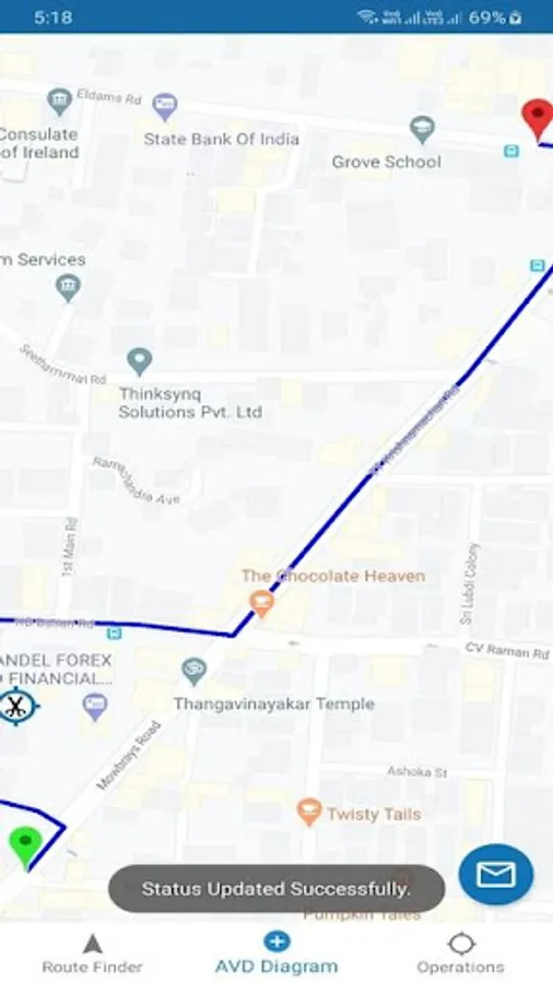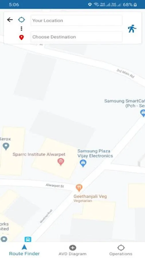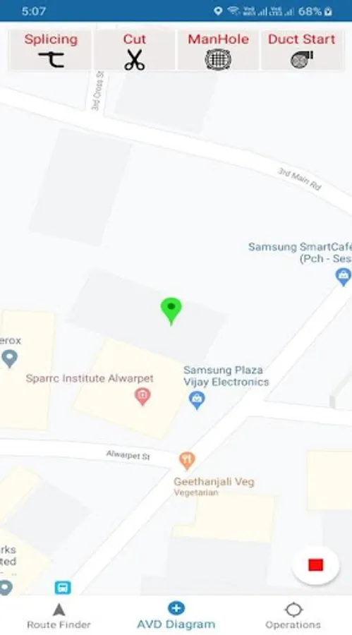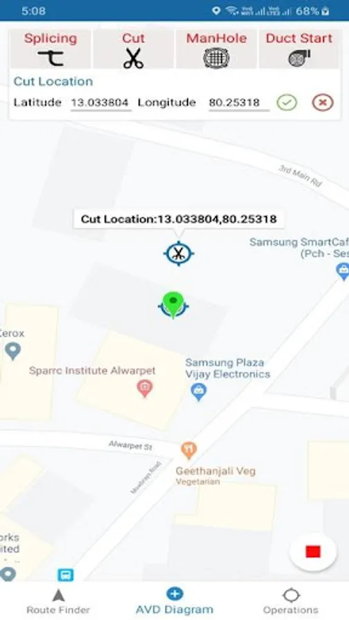 It is used by a site engineer for laying fiber optic cable. There is two main functionality in this app one is Route finder and the other is AVD diagram. The Route finder calculates both the shortest and the longest distance between the starting point and destination. It also calculates the time to reach the destination. The AVD diagram is used in the process of cable laying. The Site engineer can pin the start location of the process and site engineer can update the various stages of the process and their respective location also.