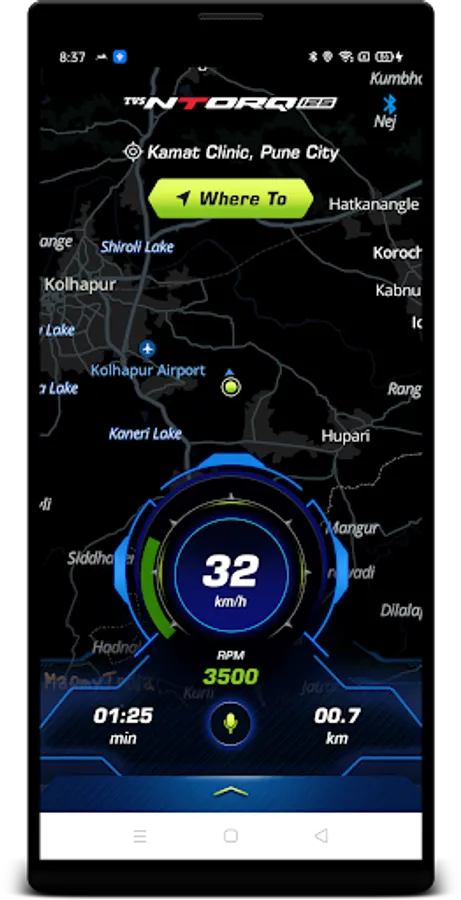 • Get navigation instructions to your location on the Speedometer. (Available in TVS NTORQ 125, TVS Apache RTR 200 4V, Apache RR 310 BS VI)