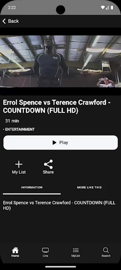 ● Programming Guide Access: Click the 'DETAILS' button on the homepage to go directly to the live tab, where you can view the live broadcast schedule with show times and titles.