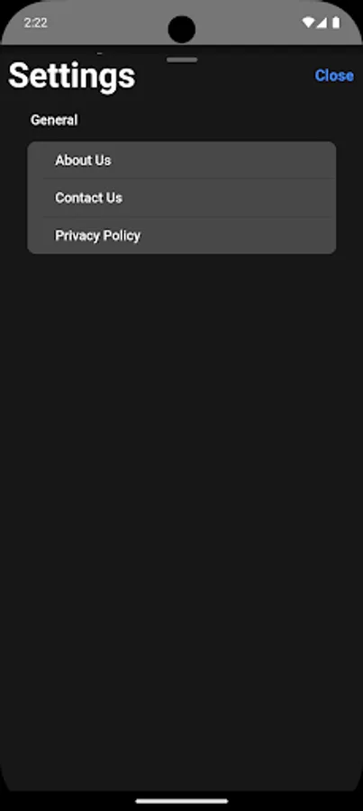 ● Settings and Info: Click the settings icon to access contact information, learn more about the app, and review our privacy policy.