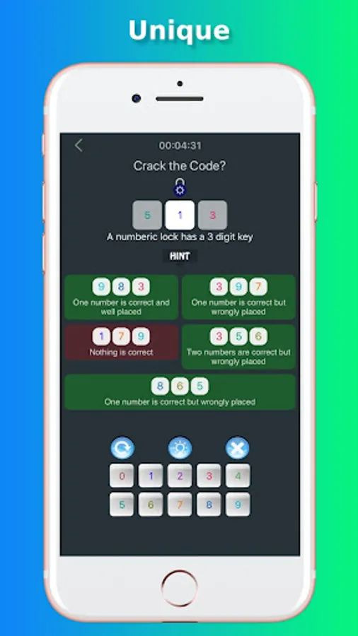 Crack The Code Pro is an Endless Puzzle game that challenges you to find 2 to 5 Correct Numbers from a limited number of Riddles to unlock the Key and compete with your friends