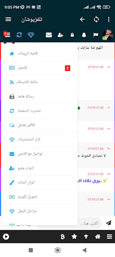Arab Chat, known as TVShan, offers you the service of communicating with other people, and you can do that by opening a private conversation or talking with all chat members collectively through the public chat box on the home page, and you can log in directly whether you are a visitor or a registered member where Chat does not require you to register or subscribe in order to enter and browse the chat.