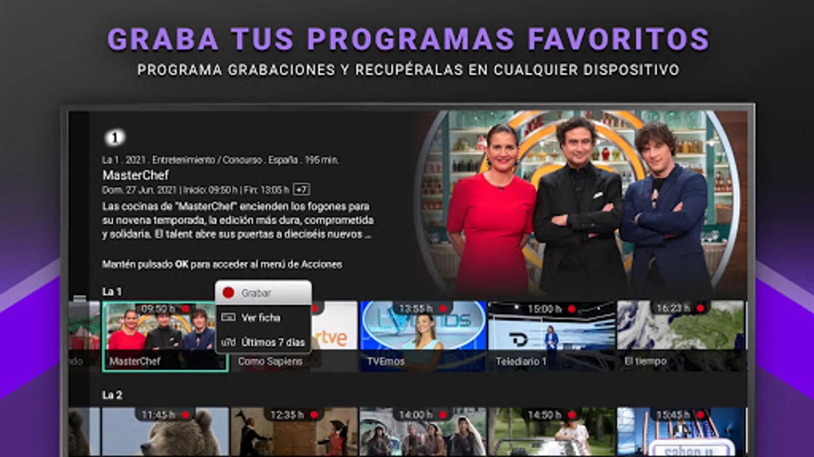 With TVUp you will be able to enjoy content with advanced functionalities that will allow you to recover programs, even if they are already started; schedule recordings with a single click and access authorized programs already broadcast during the last seven days.