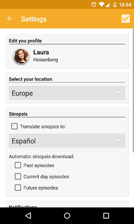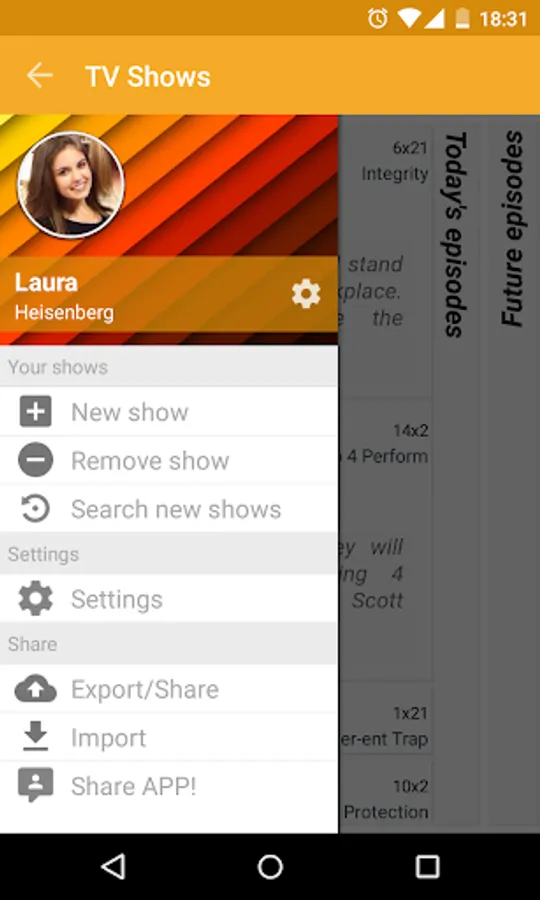 • Share with your friends the shows you follow with the new Export/Share functionality