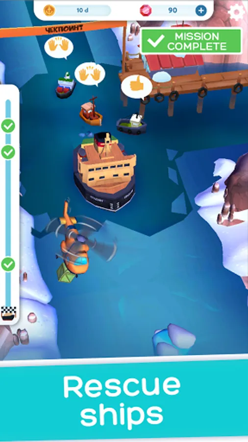 The icebreaker sails along the Northern Sea Route and saves ships which are stuck in the Arctic ice. The player earns resources and unlocks more and more icebreaker ships.