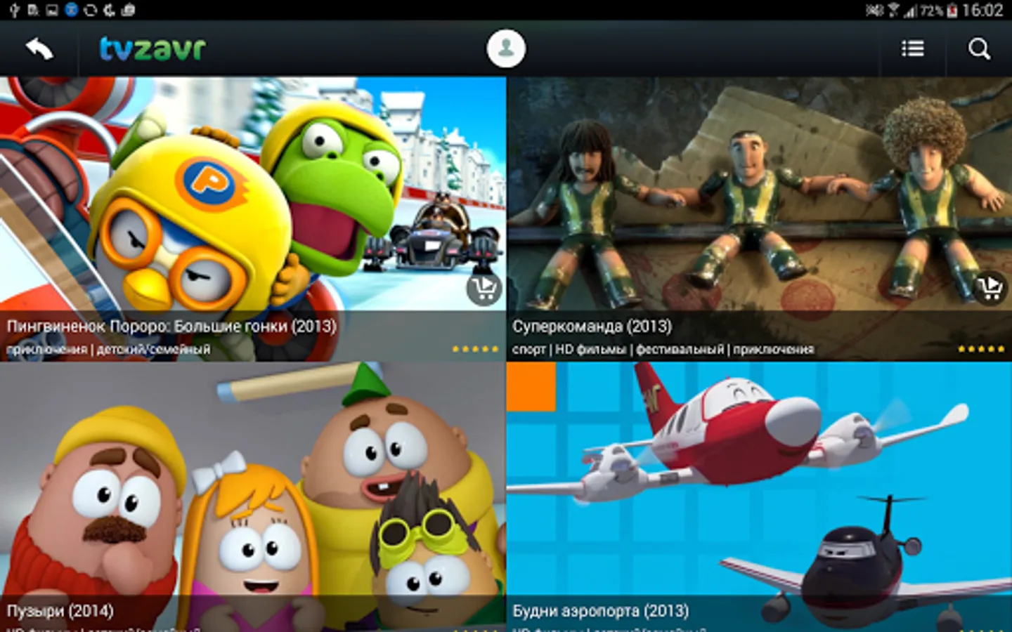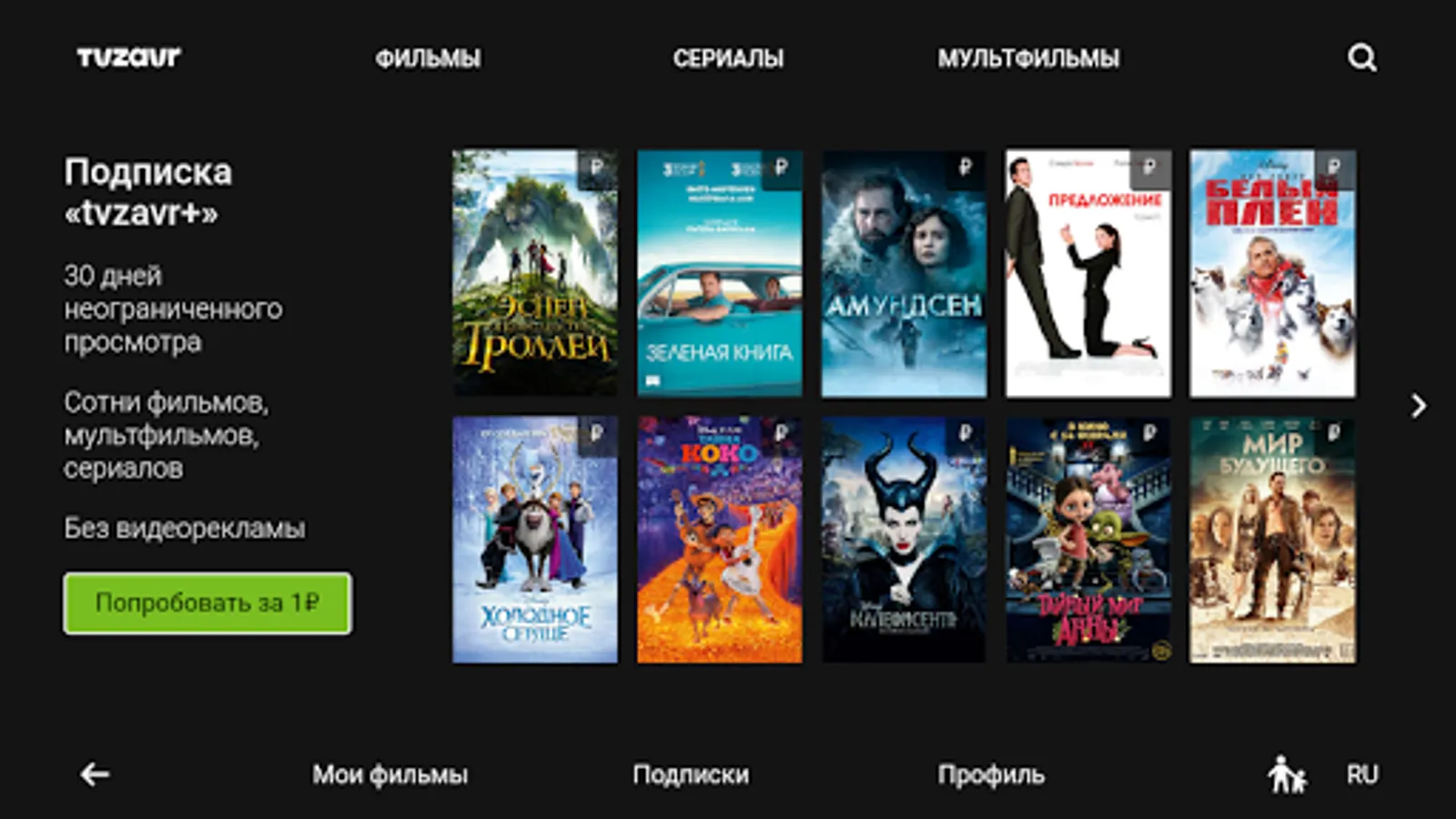 tvzavr TV - an application for those who love movies. Thousands of movies, cartoons and TV shows, Full HD picture quality, attractive prices for new movie distribution and blockbusters. Choose a movie you like and watch it online right now!
