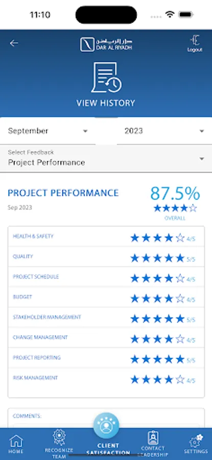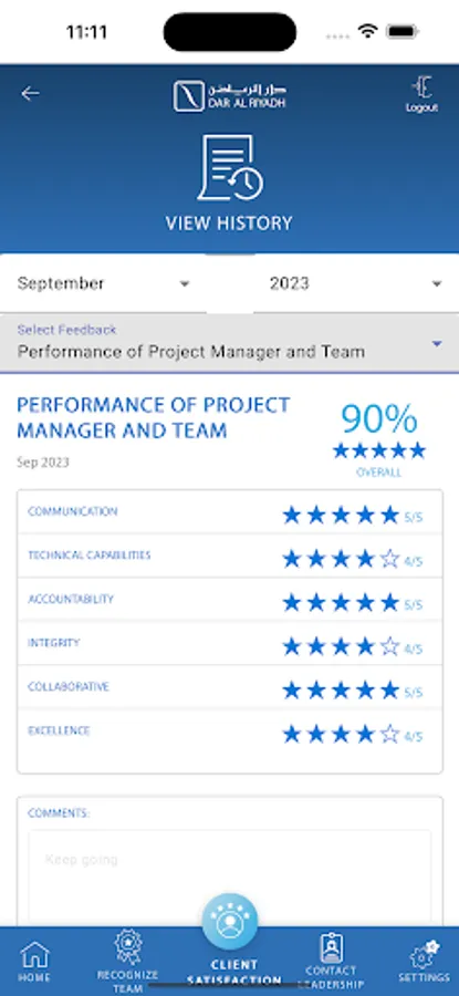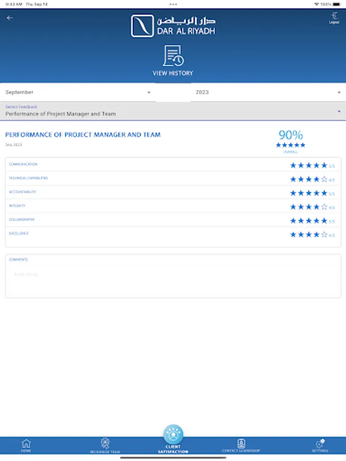 My partner mobile application will allow our clients to provide feedback on the project progress and the performance of the team, It also provides contact details of the team.