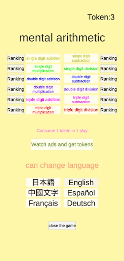 It is a mental arithmetic 4-choice game that does not require explanation.