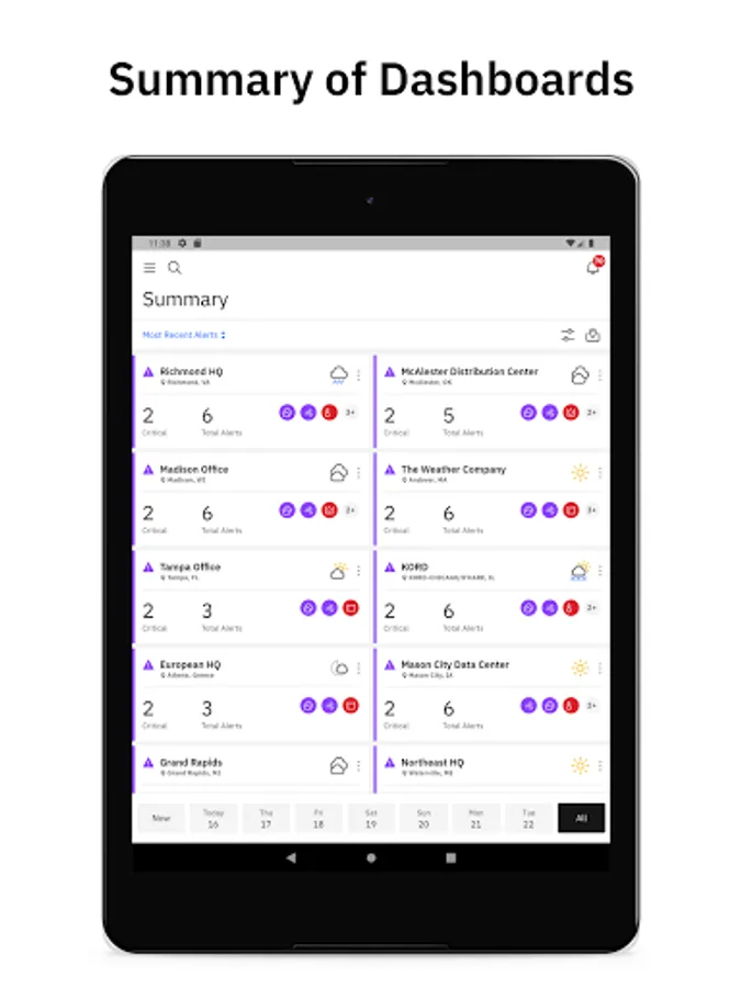 Location Centric. The new Operations Dashboard Platform is organized to provide separate dashboards for each location of interest, but manages all locations through the summary dashboard to provide an exception-based management approach to save time, and provide focus.