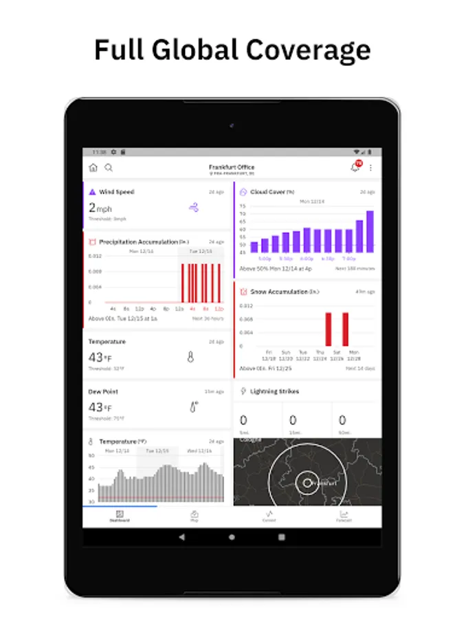 Combining your business expertise and your operating procedures with The Weather Company's world-leading weather forecasting and alerting to deliver as needed guidance in an easy-to-understand dashboard for web and mobile users.