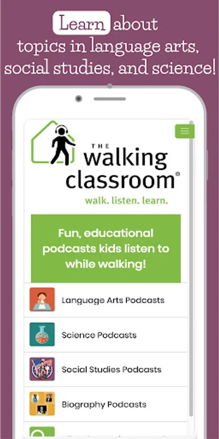 Each 15-minute podcast in our 100% ad-free app also includes discussion questions to spark conversation. The idea behind the research-proven Walking Classroom program is simple: