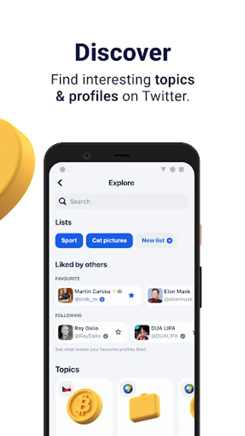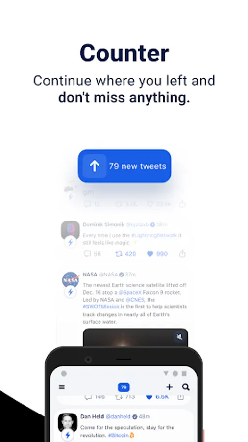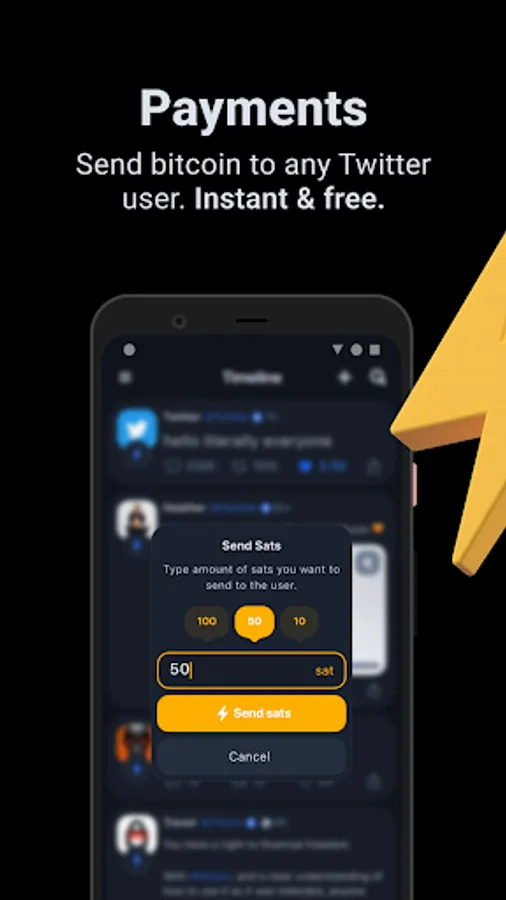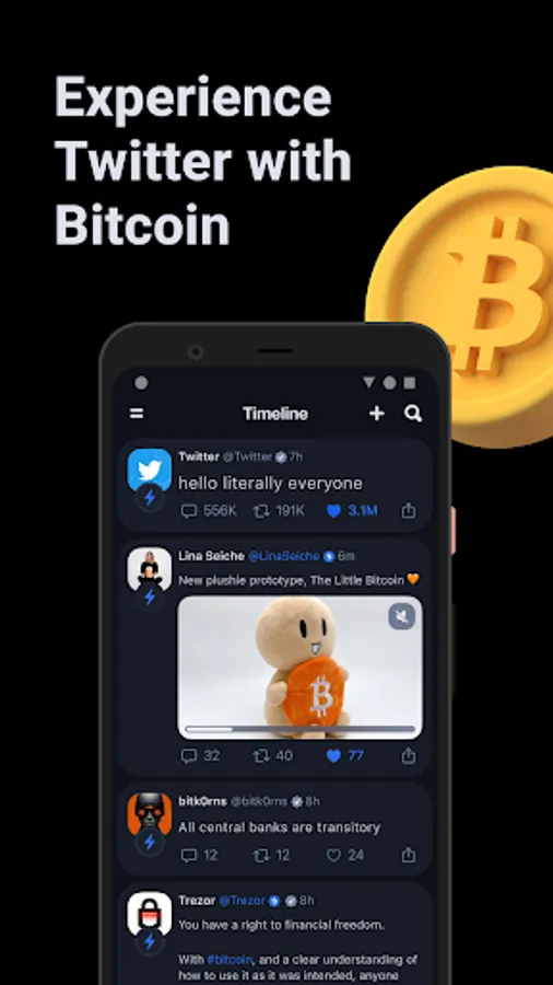 Follow news from around the world and support other users with Bitcoin. Reward friends, tech-leaders or celebrities with Sats and support them in their next Twitter activity.