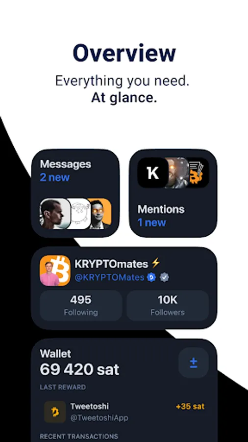 ⚡️Tweetoshi is a Twitter client with an integrated bitcoin lightning network. This allows you to use your Twitter account with extra features that are especially appreciated by the crypto community.
