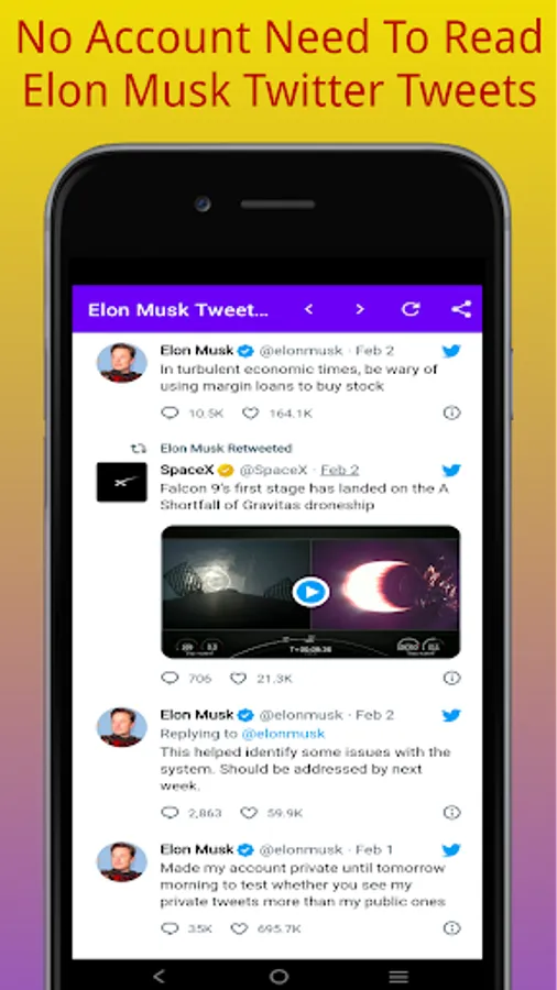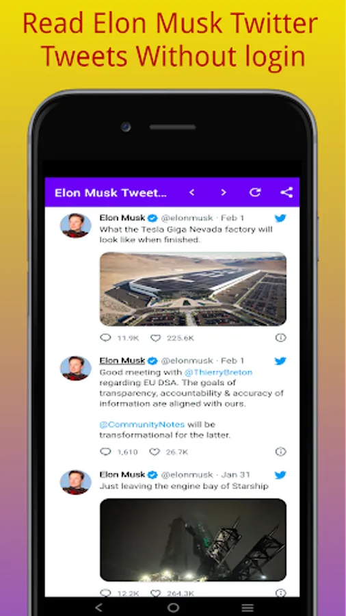 Read tweets of Elon Musk without login using Elon Musk Twitter App