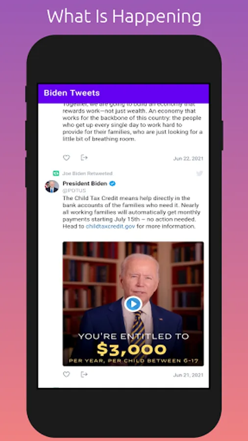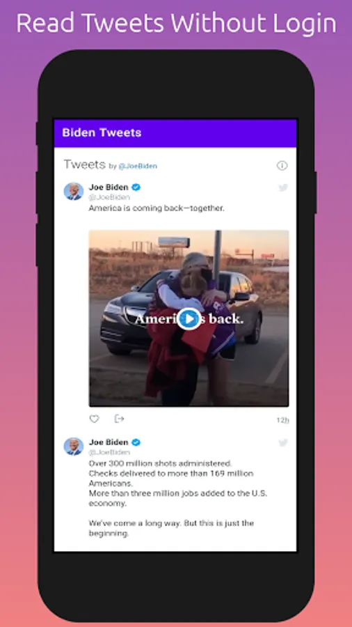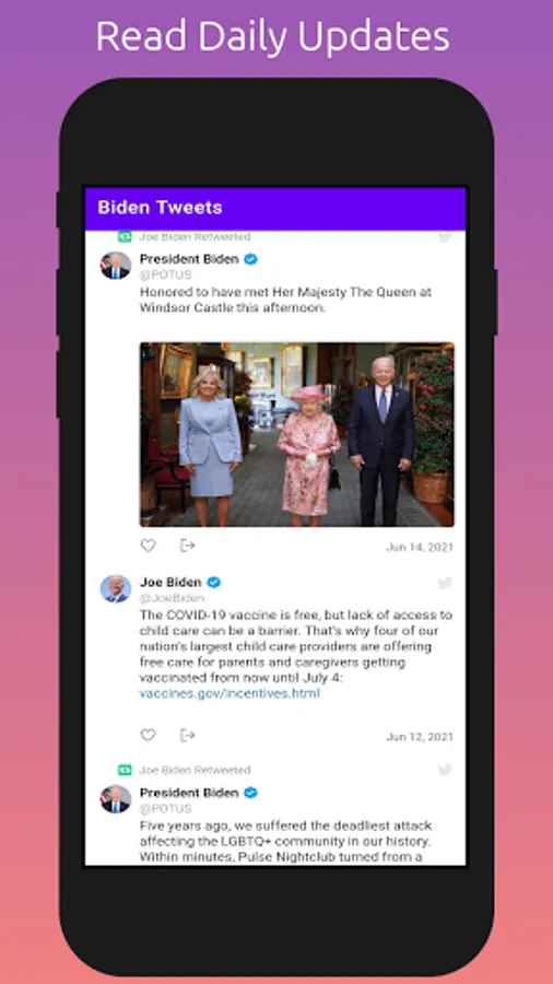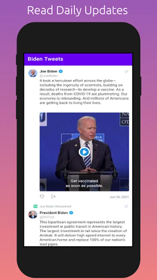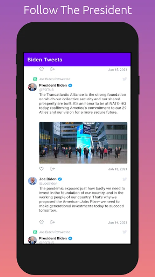 this app used to read tweets of Biden without login to twitter account. You can read president Biden tweets daily using this Biden tweets app .