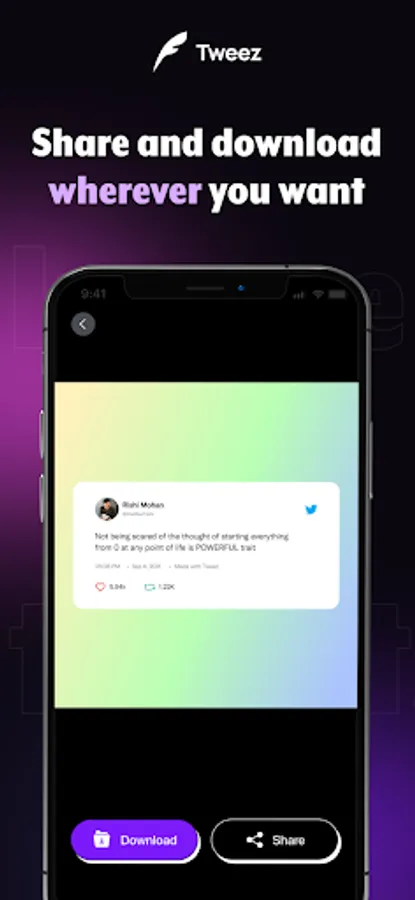 For Tweet lovers, Create the coolest tweet with this app and share it with your social groups and status. Create a perfect snapshot from your tweets, paste the tweet URL, customize your screenshot and share it wherever you want.