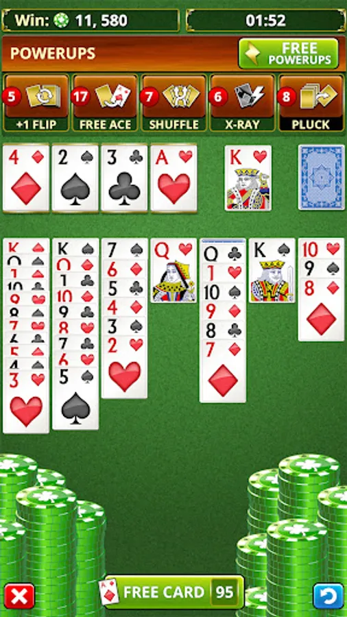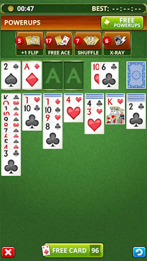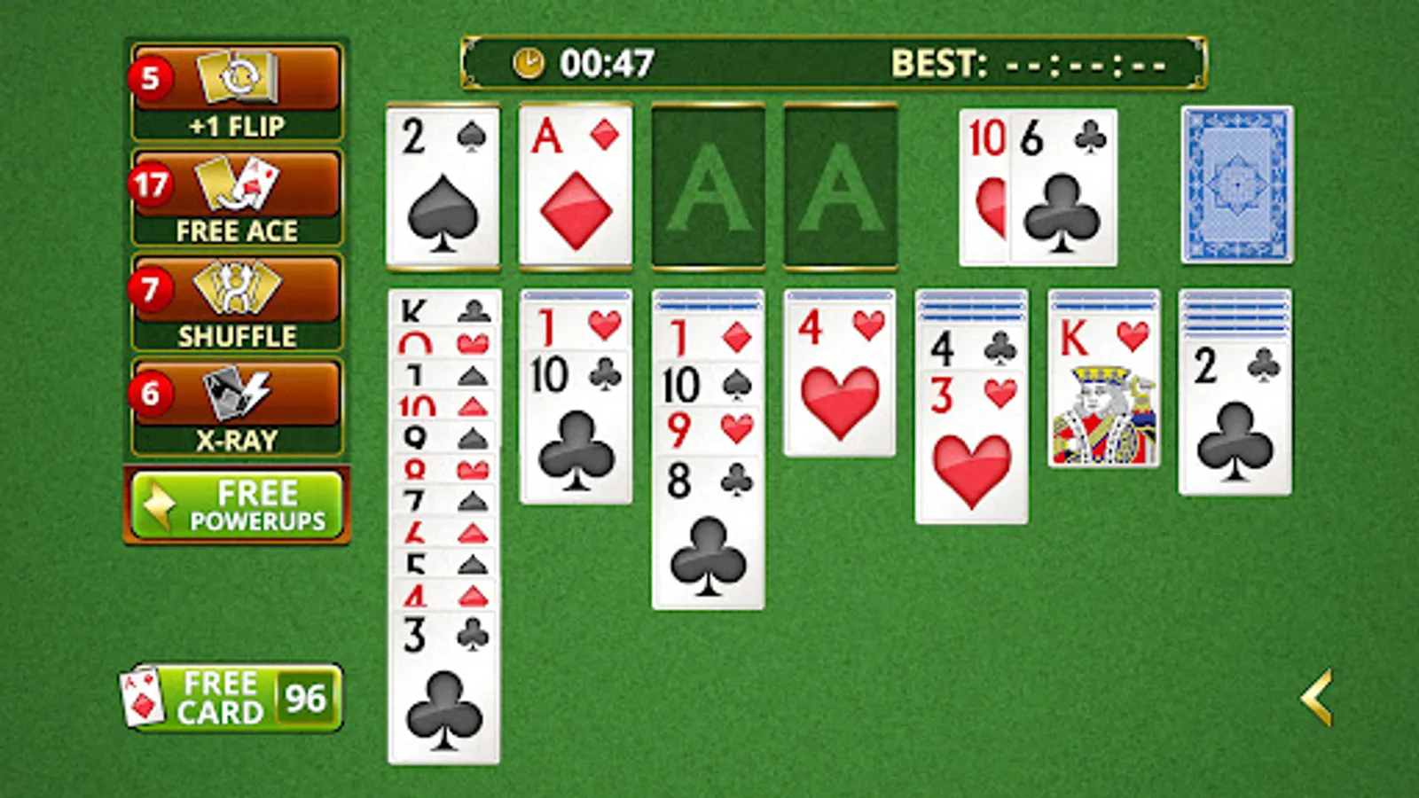 Use Bonus Powerups to help you WIN BIG! Unleash Free Flips, Free Aces, X-Rays and more! Play solitaire card games free in a Solotaire Collection of games with daily bonus! Download Solotare FREE today! ENJOY FREE SOLITAIRE!