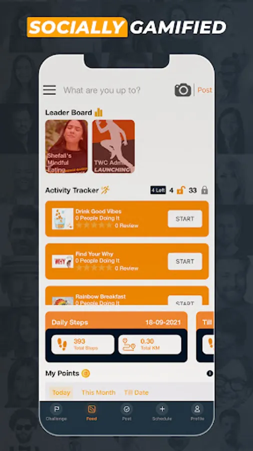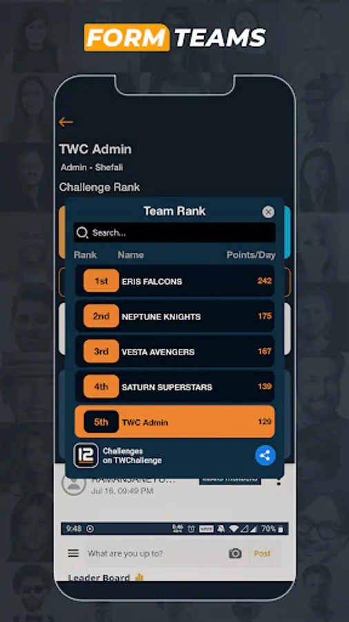 TWC is a one-stop shop for corporate team challenges. Choose from Wellness Challenges like Team Walkathon, Physical, Mental, Or Nutrition. Launch a Sales, Values, or Vision challenge for our organization through the app.