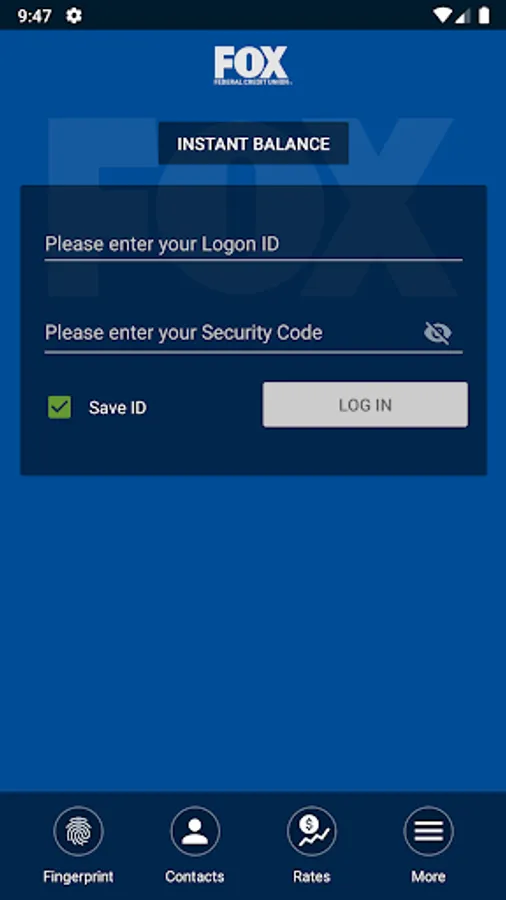 A User Name and Password is required for logging onto this app and can be created when registering for online banking. To register for FFCU’s Online Banking service, please visit our website at www.foxcredit.org and choose Enroll in the logon box. You must have online banking service and a password to access account information via Fox Mobile Banking.