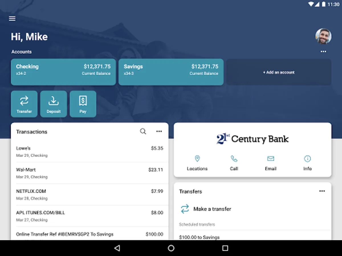 21st Century Bank Mobile is your personal financial advocate that gives you the ability to aggregate all of your financial accounts, including accounts from other banks and credit unions, into a single view. It’s fast, secure and makes life easier by empowering you with the tools you need to manage your finances.