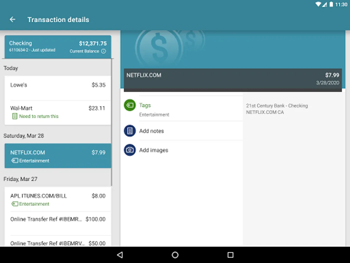 Keep your transactions organized by allowing you to add tags, notes and photos of receipts and checks.