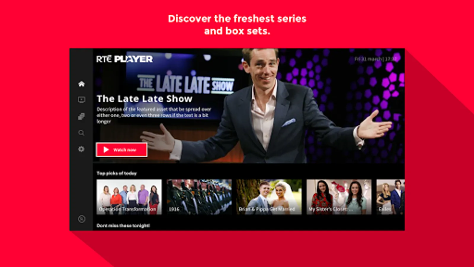 Discover something great to watch every time you use RTÉ Player. Explore Box Sets, RTÉ Player Originals and all your RTÉ TV favourites on the fully reloaded RTÉ Player app for Android TV