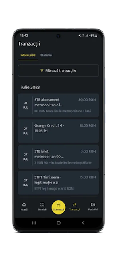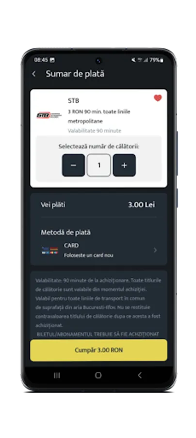 Users have the possibility to pay for public transport tickets and subscriptions directly from the app, without interacting with a cashier or needing cash.
