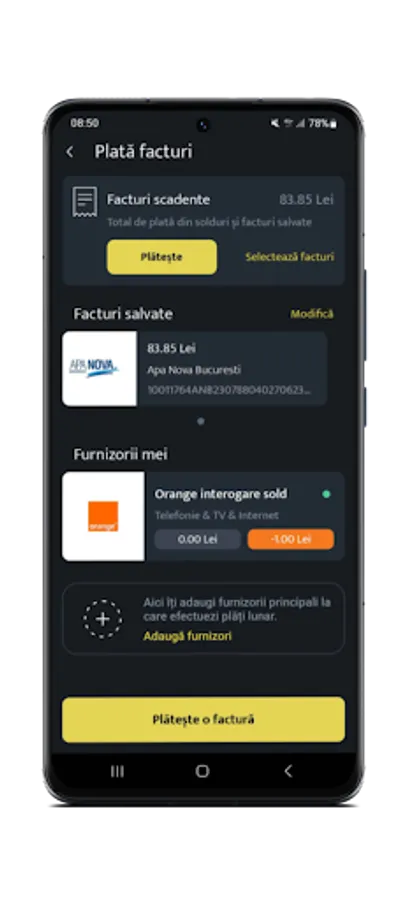 Users have the possibility to pay invoices from different utility suppliers directly from the app: