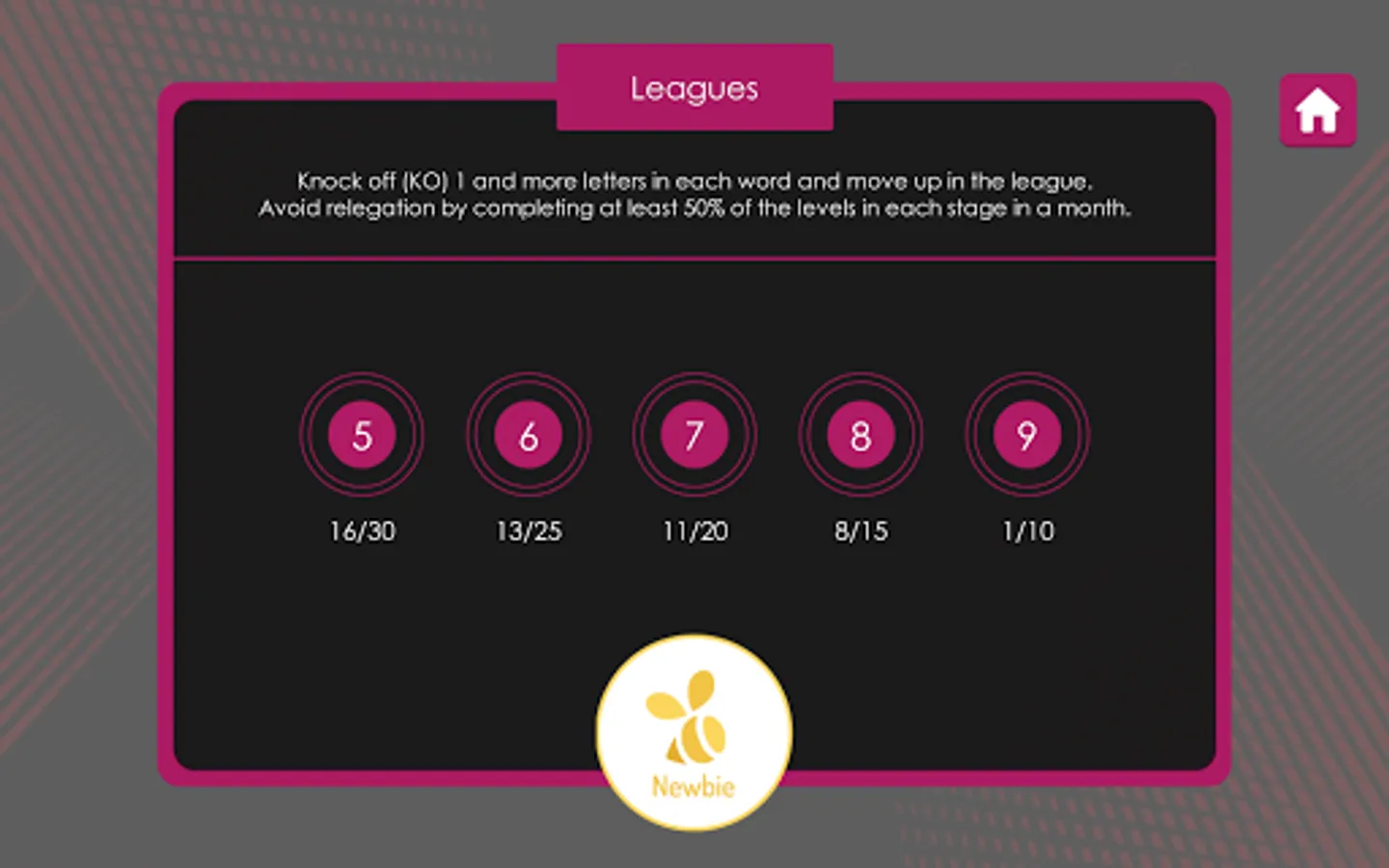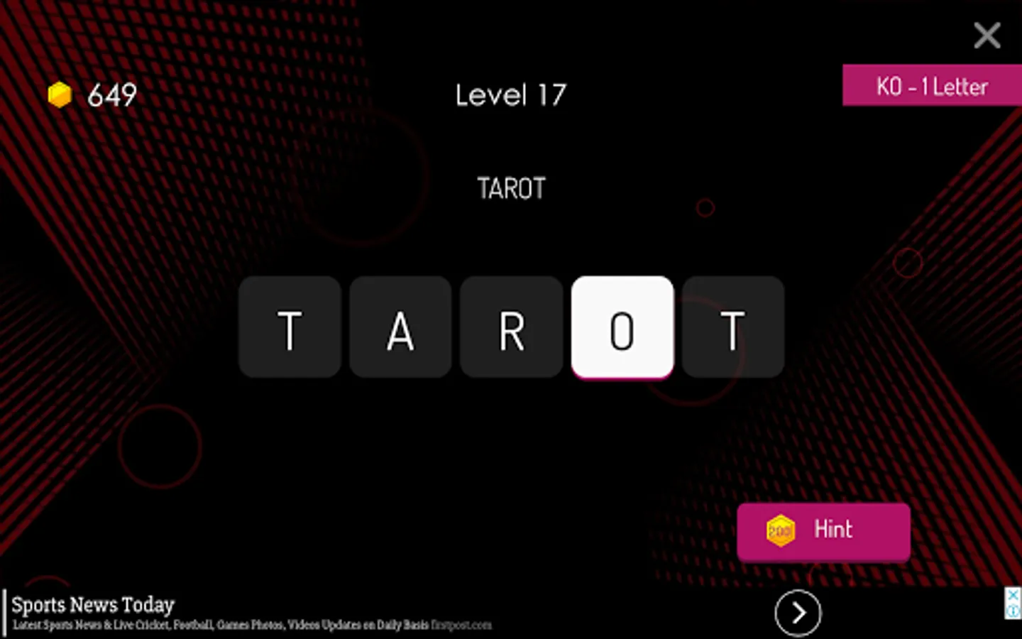 Create a word by eliminating required number of letters from the letter tiles. As the game progresses, the letter tiles increase from 4 to 9 and the required number of tiles to be eliminated increases from 1 to 6. You can swipe to Knock Off subsequent letter tiles.