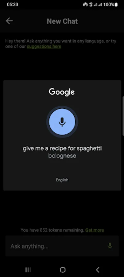 🎤 Includes voice recognition in multiple languages so that you can speak into the microphone instead of manually typing out your queries.