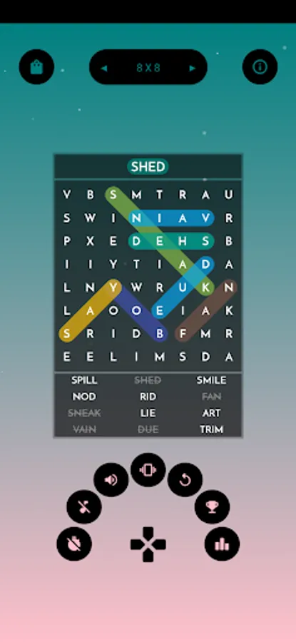 Find hidden words by searching for them in the grid. Tap on an unfamiliar word to look up its meaning.