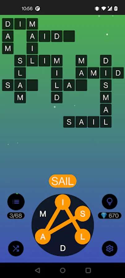The main goal of this word puzzle is using the given letters, combine them and make them into a word cross. Just slide your finger to connect the letters to combine a correct word!